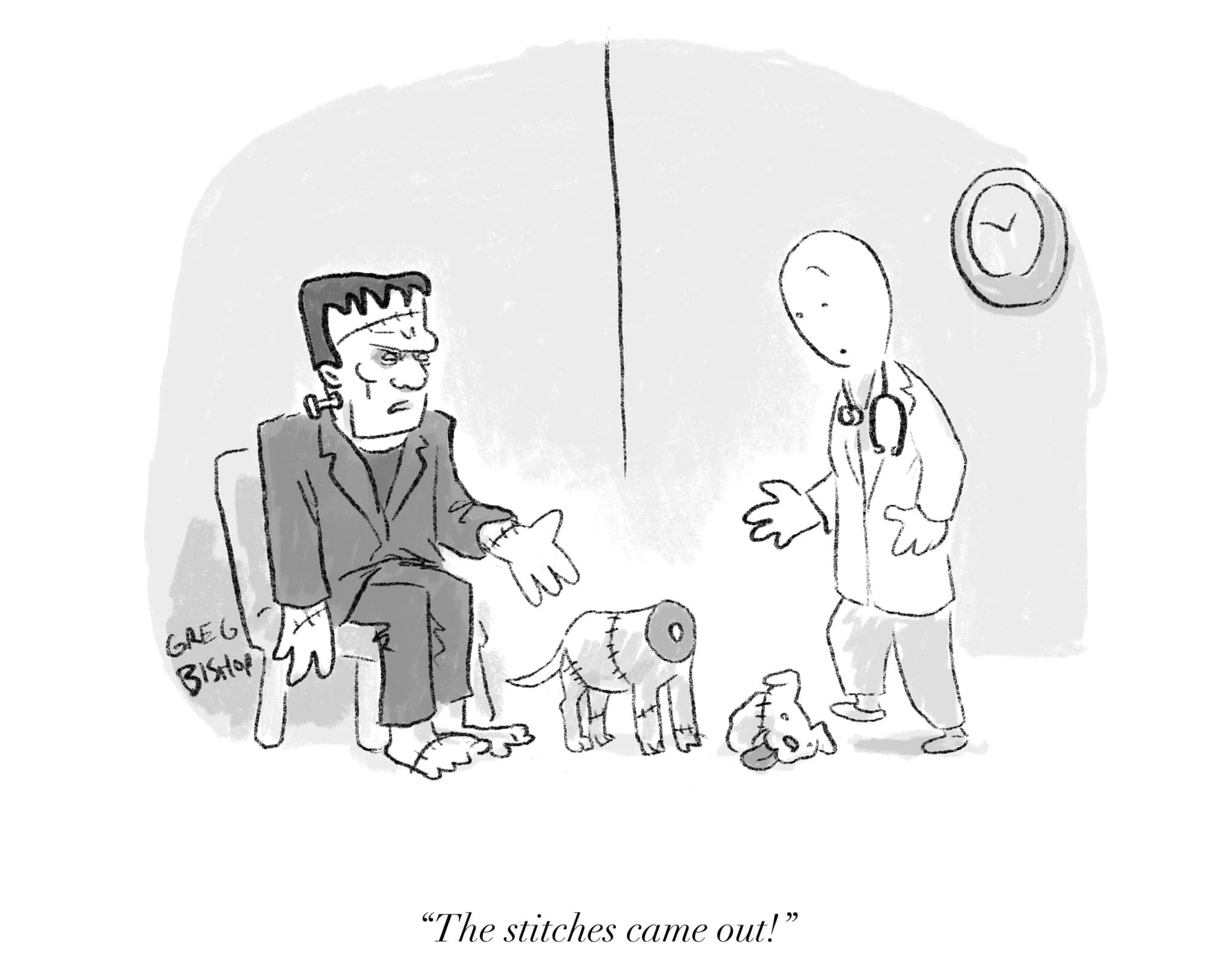 I am so sure some of these have a 0% chance of making it into the New Yorker, and yet I draw them anyway. Possibly because I just think they're funny, possibly because I'm trying to sabotage myself, or possibly because sometimes– you just need to get something out of your system, regardless of whether or not it's the appropriate time and place to do so.