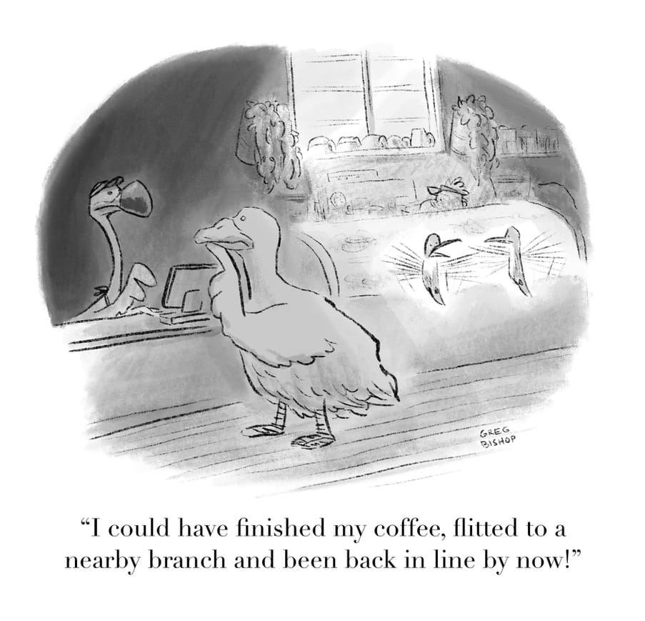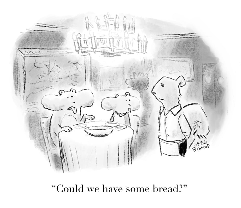 So look, I hope you do like them. My guess is that if you're reading this far you either have a boring job or are one of my aunts. In either case I appreciate you so much that I'm going through all the trouble of submitting these silly drawings to The New Yorker over and over again so that you can say you were one of the early believers. Cartooning is a wonderful art form, but it takes someone reading to make it worthwhile. Thanks for being part of it.